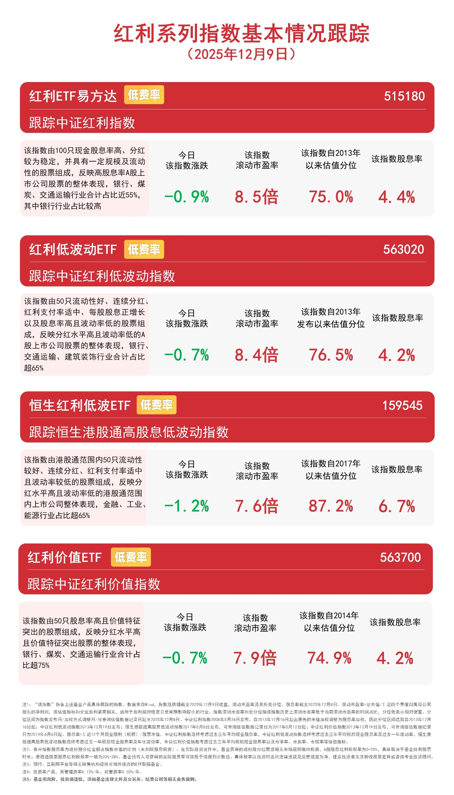 据悉找期货配资,易方达基金是目前唯一一家红利类ETF全部实行低费率的基金公司,旗下恒生红利低波ETF(159545)、红利ETF易方达(515180)、红利低波动ETF(563020)、红利价值ETF(563700)、A500红利低波ETF(563510)等产品的管理费率均为0.15%/年,可助力投资者低成本布局高股息资产。